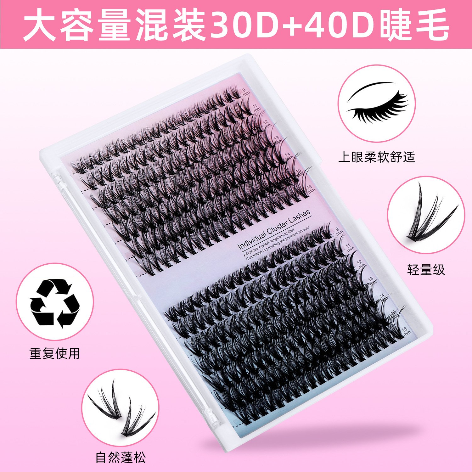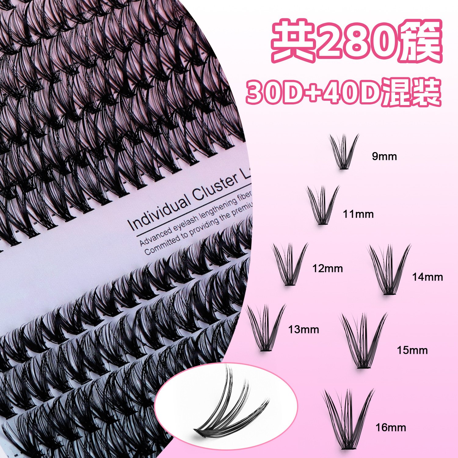 跨境分段睫毛套装 280簇自嫁接30D40D欧美浓密朵毛眼睫毛胶水款