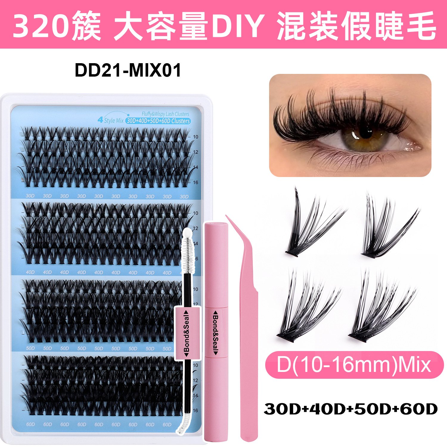 | Specification | 280 cluster eyelash glue tweezers set (30d+40d), Dd16 (30p+40p mixed) 280 clusters, Dd16 (30p+40p mixed) + tweezers, 640 cluster eyelash book 30d+40d+50d (no glue tweezers), Eyelash book (set of 3) 30d+40d+50d, 144 mixed flowers-fdmix01, 40d-240 mixed pack, 60p-240 pieces mixed pack, 80p-240 pieces mixed pack, Fishtail model-dd13-01 (best-selling model), Dd13-02-(20p+50p) (high cost performance best-selling model), 144 clusters of blue box + double-headed glue + glue remover + tweezers, 144 clusters of pink box + double-headed glue + glue remover + tweezers, Pink double-headed glue + pink tweezers set (assembled and photographed), Mix01 (120 clusters), Mix02 (120 clusters), Mix03 (160 clusters), Mix04 (120 clusters), 40p (200 clusters), Pf02-01-120 cluster, Pf02-02-120 cluster, Pf02-03-120 cluster, Pf02-04-120 cluster, Dd20-01(20 rows 30p+40p), Dd20-01+tweezers+glue, Dd20-02(20 rows 50p+60p), Dd20-02+tweezers+glue, Dd21-mix01 (16 rows 30p+40p+50p+60p), Dd21-mix01++ tweezers + glue, Hd01-mix01 (30 rows horizontally 30p+40p+50p), Hd01-mix01+tweezers+glue, Hd02-mix01 (horizontal 16-row segmented eyelash combination), Hd02-mix01+tweezers+glue, Multiple sets are packaged in opp bags by default |