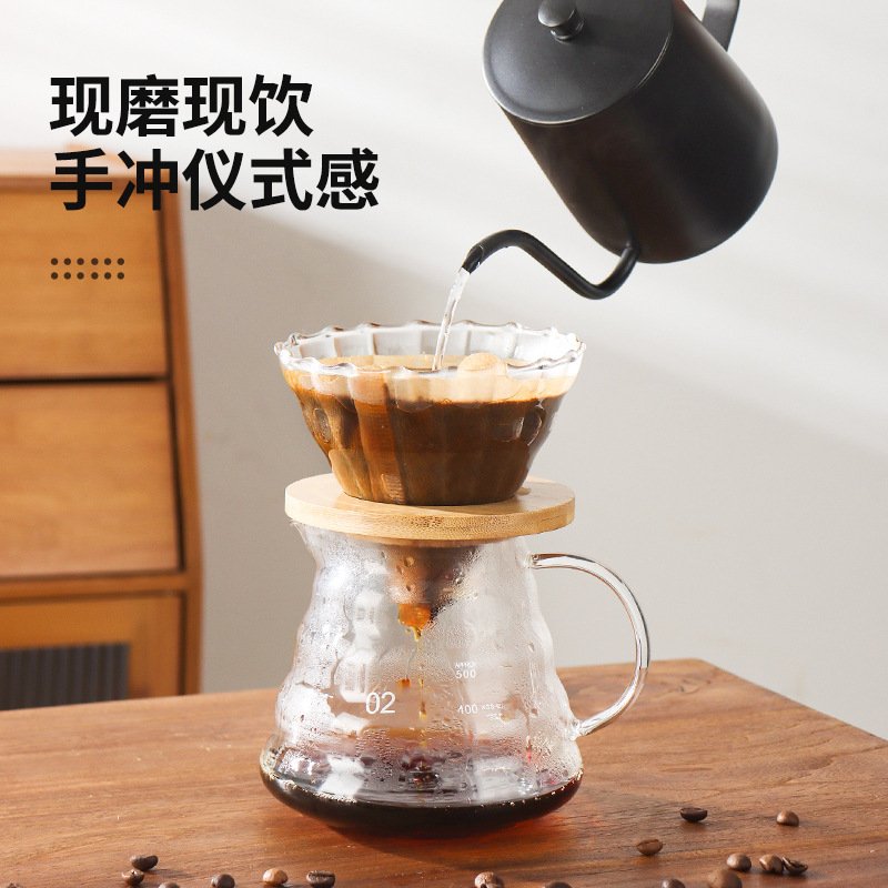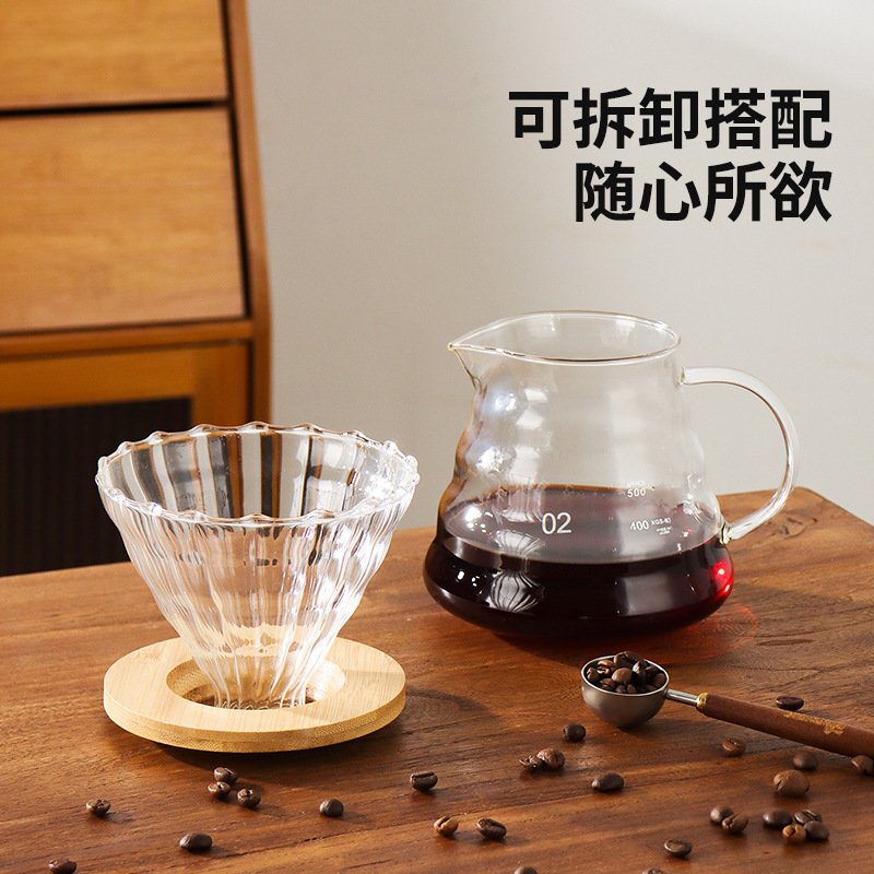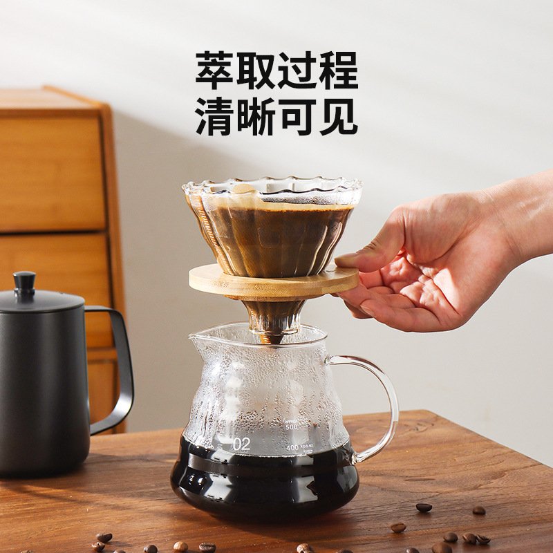 Hand Coffee Pot Filter Cup Household Glass Brewing Sharing Pot with Scale Glass Filter Cup Coffee Utensil suit