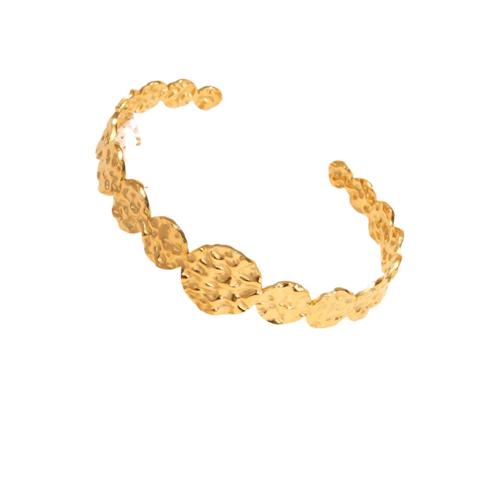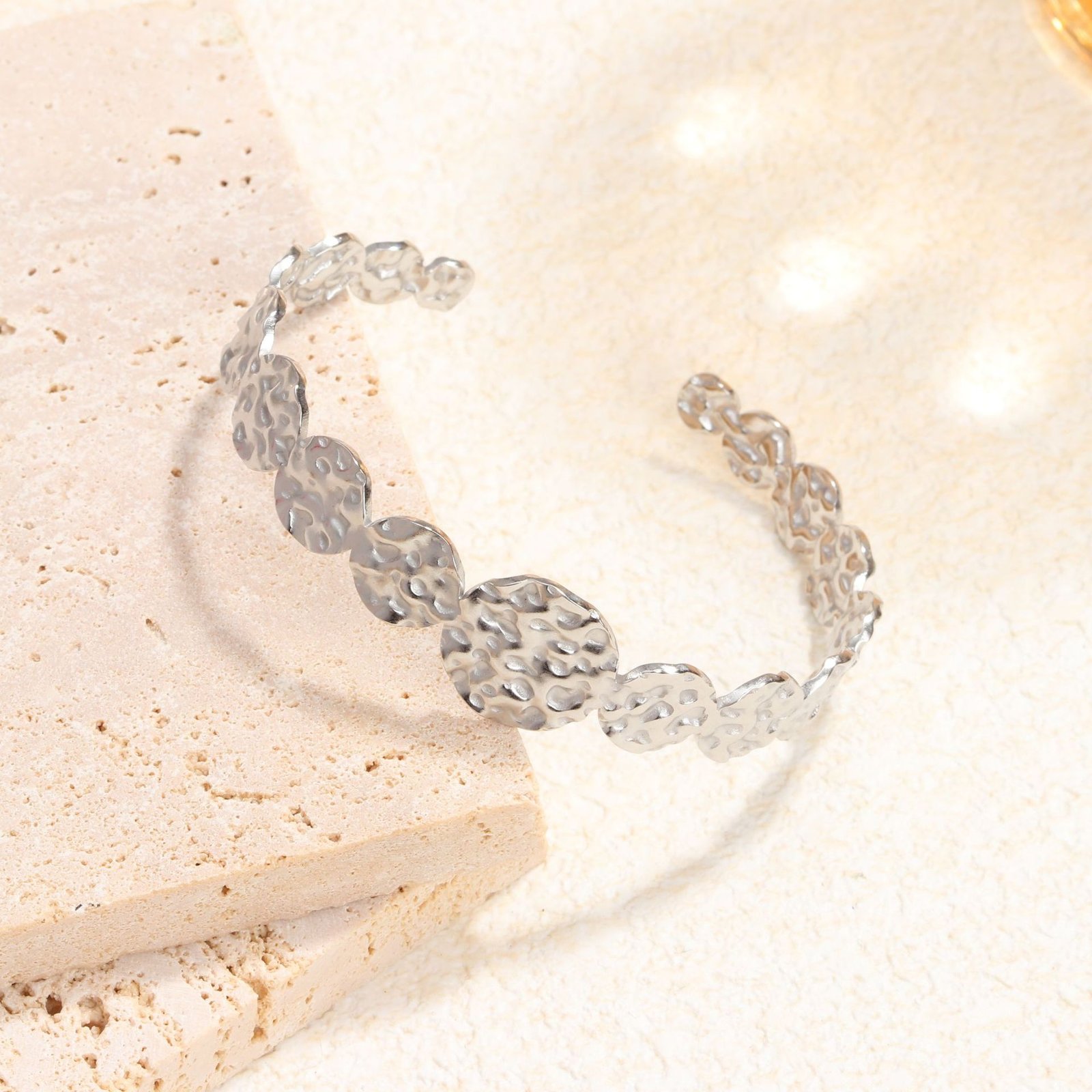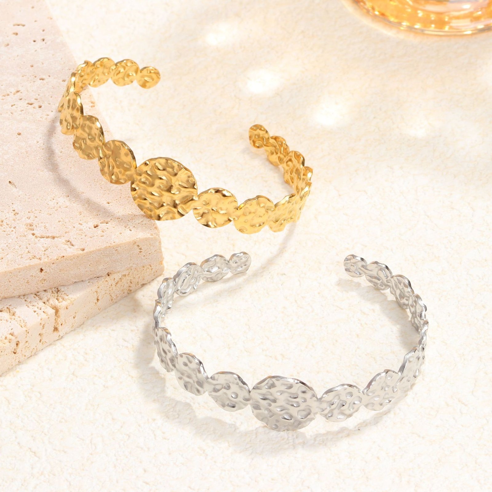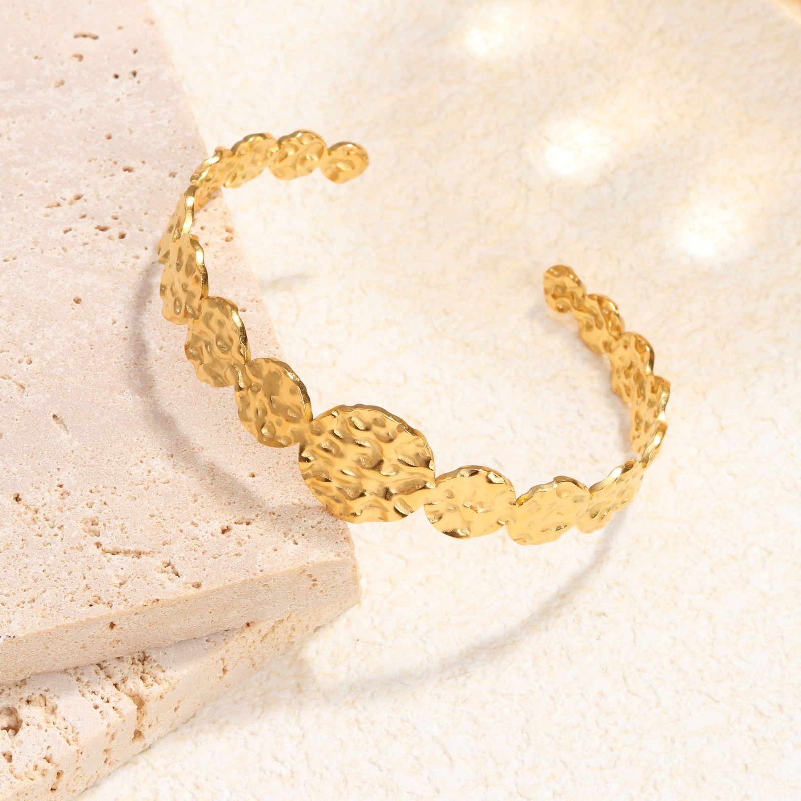 INS网红风钛钢凹凸锤纹宽面手镯18K金不锈钢夸张个性手镯女厂家