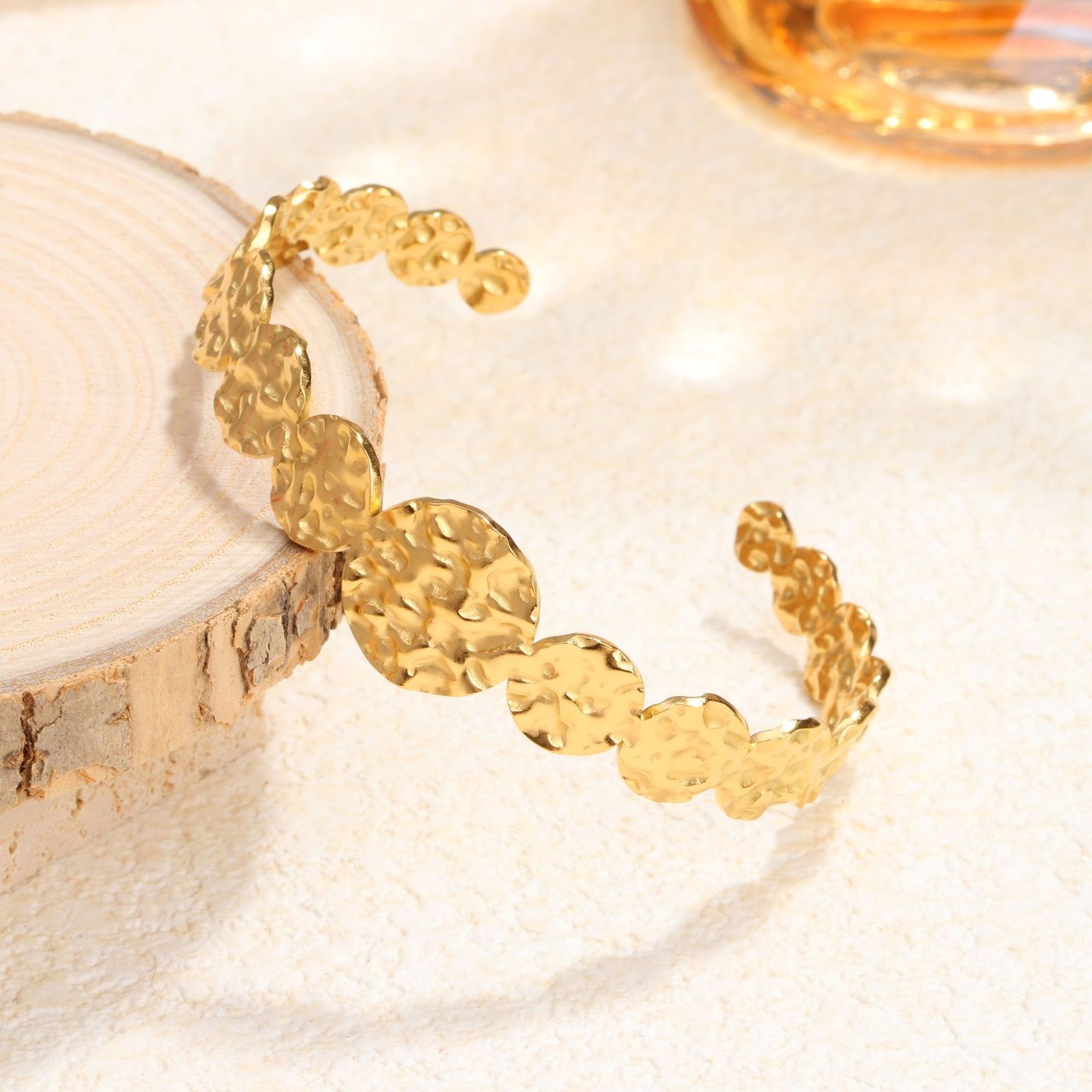 INS网红风钛钢凹凸锤纹宽面手镯18K金不锈钢夸张个性手镯女厂家