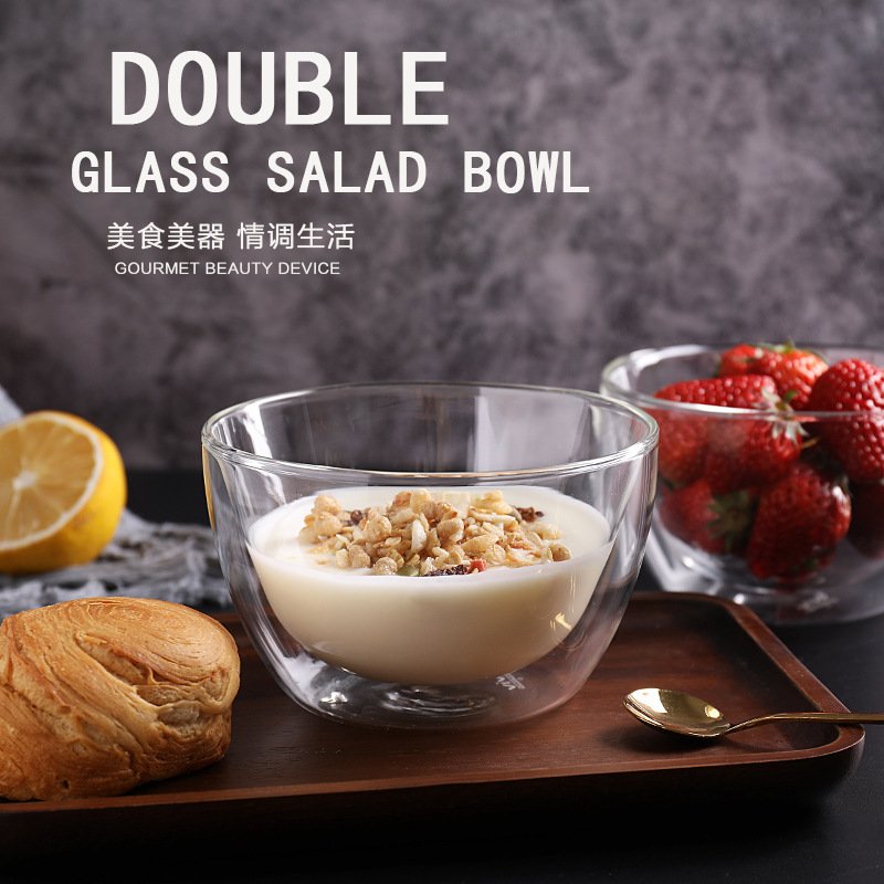 Be the first to review “Wholesale high temperature resistant double-layer glass bowl logo High Borosilicate transparent glass bowl transparent salad bowl”
