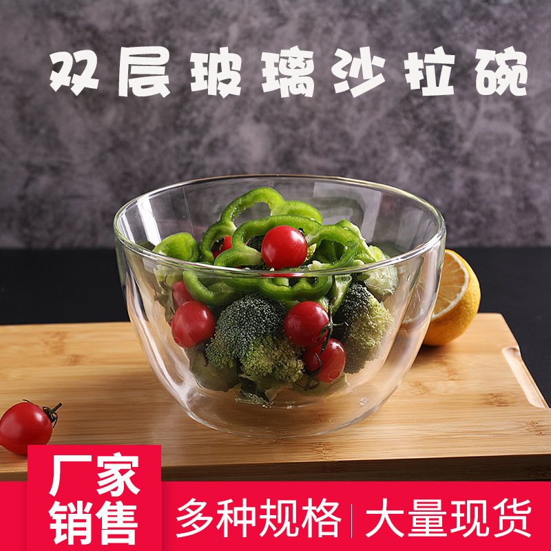 Wholesale high temperature resistant double-layer glass bowl logo High Borosilicate transparent glass bowl transparent salad bowl